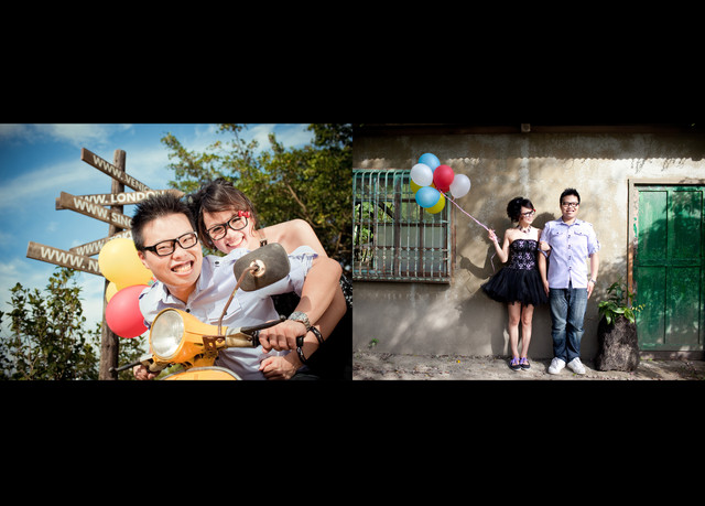 這次的自助婚紗實在太有趣了,出動的道具也很多呢!有摩托車還有氣球~~